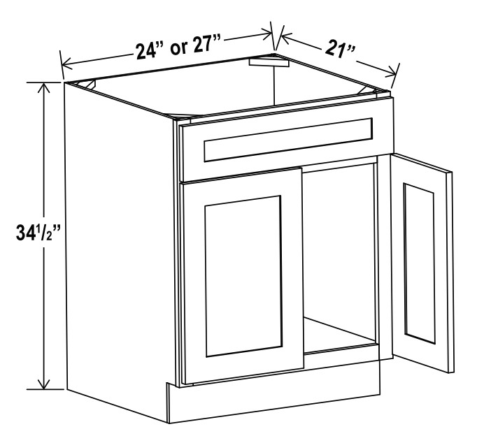 Shaker Ashton Green - Vanity Sink Base Cabinet - 27"W X 34 1/2"H X 21"D