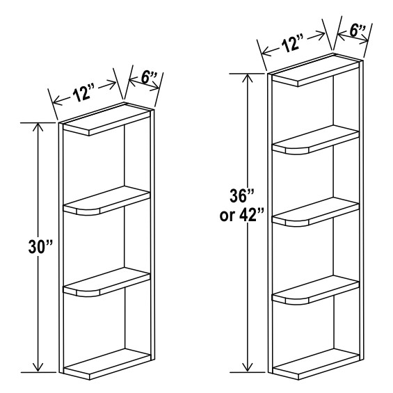 Shaker Ashton Green - Wall End Shelf - 6"W X 42"H X 12"D - 4 Shelves